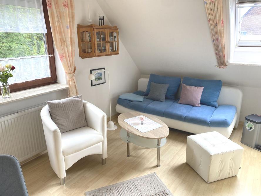 Küchenzeile mit Kühlschrank, 2 Platten Cerankochfeld, kleiner Geschirrspüler, Kaffeemaschine, Toaster, Microwelle ... (am Wohnbereich)