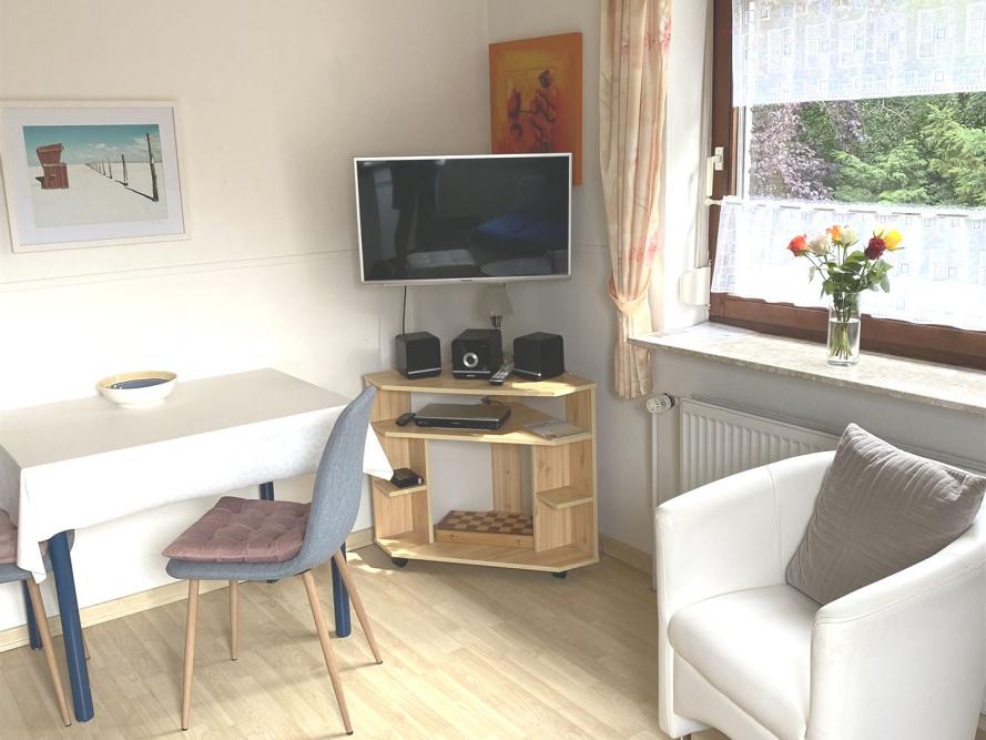 Wohnzimmer Farb-Flach-SAT-TV, Stereoanlage und Essecke